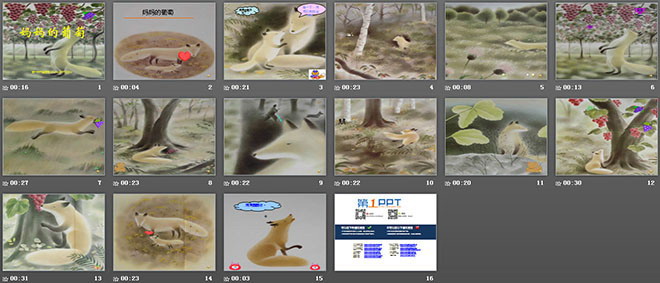 “我的孩子饿得直哭,对不起,让我摘一串葡萄吧。”狐狸妈妈这么说着,跳到葡萄架上,摘了一大串葡萄,急急忙忙往山里跑。