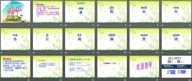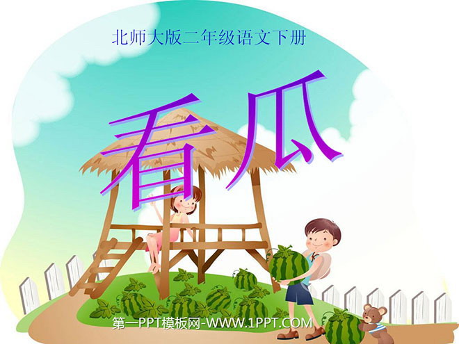 关键词:看瓜课件PPT,北师大版二年级下册语文PPT课件下载,二年级语文幻灯片课件下载,看瓜PPT课件下载,.PPT格式