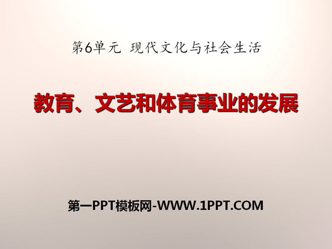 关键词:现代文化与社会生活教学课件,教育文艺和体育事业的发展教学课件,岳麓版八年级下册历史PPT课件下载,八年级历史幻灯片课件下载,现代文化与社会生活PPT课件下载,教育文艺和体育事业的发展PPT课件下载,.PPT格式;