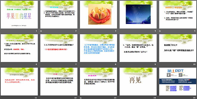 关键词:苹果里的星星课件PPT,西师大版三年级下册语文PPT课件下载,三年级语文幻灯片课件下载,苹果里的星星PPT课件下载,.PPT格式