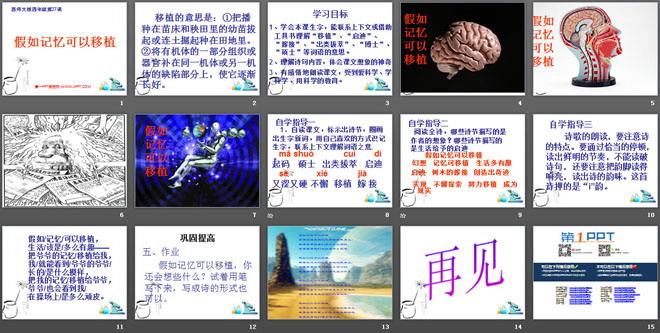 关键词:假如记忆可以移植课件PPT,西师大版四年级下册语文PPT课件下载,四年级语文幻灯片课件下载,假如记忆可以移植PPT课件下载,.PPT格式