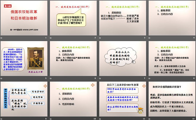 关键词:资产阶级统治的巩固扩大和国际工人运动教学课件,俄国农奴制改革和日本明治维新教学课件,岳麓版九年级上册历史PPT课件下载,九年级历史幻灯片课件下载,资产阶级统治的巩固扩大和国际工人运动PPT课件下载,俄国农奴制改革和日本明治维新PPT课件下载,.PPT格式;