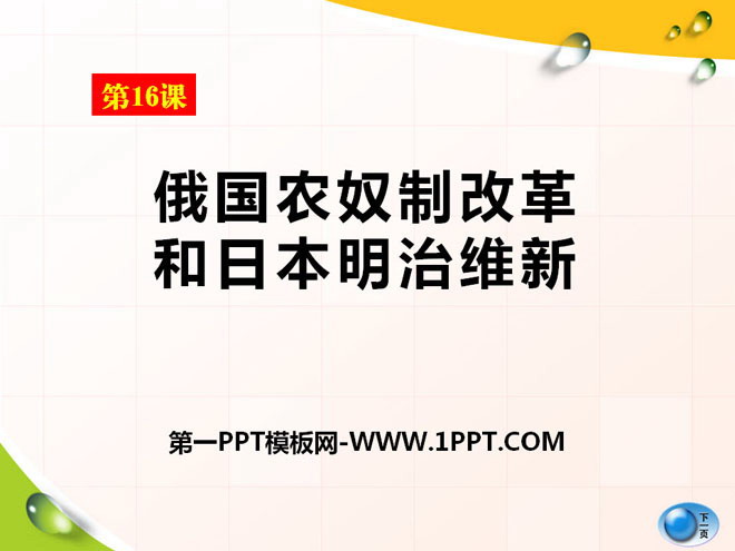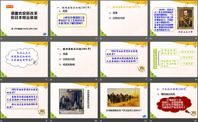 关键词:资产阶级统治的巩固扩大和国际工人运动教学课件,俄国农奴制改革和日本明治维新教学课件,岳麓版九年级上册历史PPT课件下载,九年级历史幻灯片课件下载,资产阶级统治的巩固扩大和国际工人运动PPT课件下载,俄国农奴制改革和日本明治维新PPT课件下载,.PPT格式;