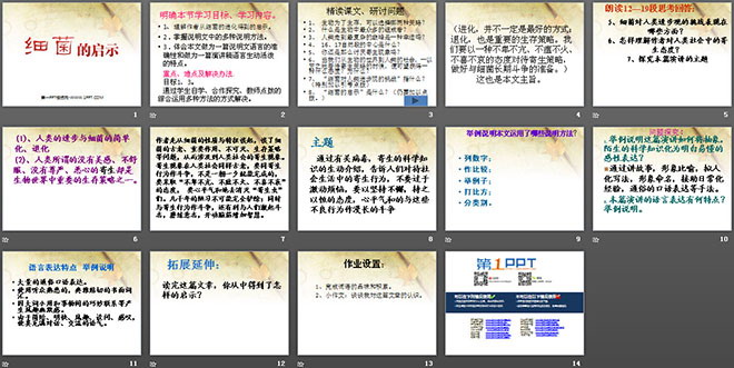 关键词:细菌的启示课件PPT,北师大版八年级下册语文PPT课件下载,八年级语文幻灯片课件下载,细菌的启示PPT课件下载,.PPT格式