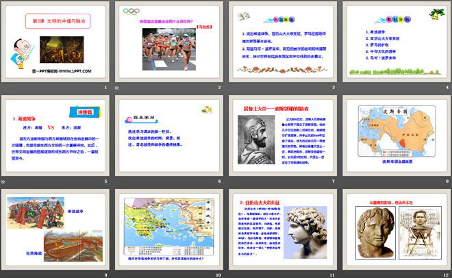 关键词:世界古代史教学课件,文明的冲撞与融合教学课件,岳麓版九年级上册历史PPT课件下载,九年级历史幻灯片课件下载,世界古代史PPT课件下载,文明的冲撞与融合PPT课件下载,.PPT格式;