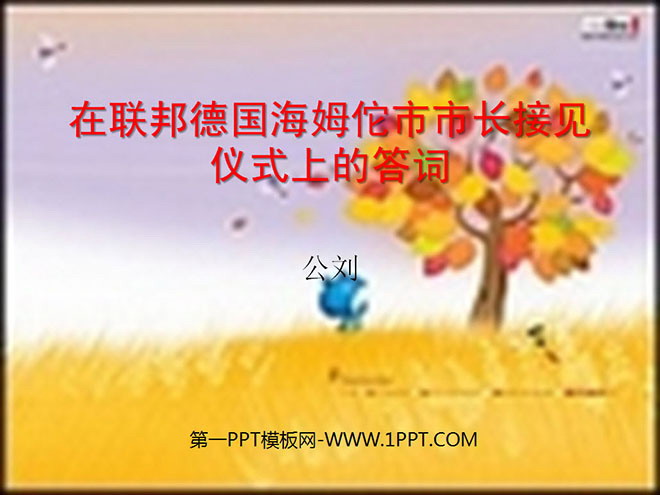 关键词:在联邦德国海姆佗市市长接见仪式上的答词课件PPT,苏教版八年级下册语文PPT课件下载,八年级语文幻灯片课件下载,在联邦德国海姆佗市市长接见仪式上的答词PPT课件下载,.PPT格式