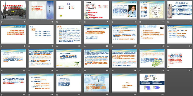二(第2—3段),先略写初到海姆佗市的情况,然后着重介绍和花衣吹笛人攀谈的内容,表达出答词的主要意思。