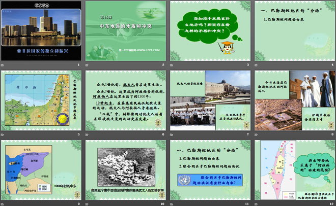 关键词:亚非拉国家的独立和振兴教学课件,中东地区的矛盾和冲突教学课件,岳麓版九年级下册历史PPT课件下载,九年级历史幻灯片课件下载,亚非拉国家的独立和振兴PPT课件下载,中东地区的矛盾和冲突PPT课件下载,.PPT格式;