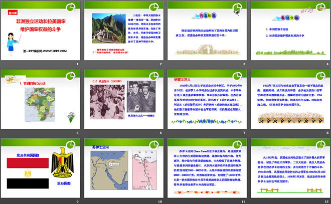 关键词:亚非拉国家的独立和振兴教学课件,非洲独立运动和拉美国家维护国家权益的斗争教学课件,岳麓版九年级下册历史PPT课件下载,九年级历史幻灯片课件下载,亚非拉国家的独立和振兴PPT课件下载,非洲独立运动和拉美国家维护国家权益的斗争PPT课件下载,.PPT格式;