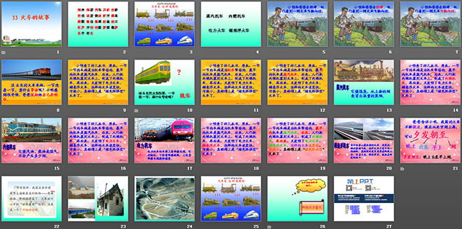 关键词:火车的故事课件PPT,人教版一年级下册语文PPT课件下载,人年级语文幻灯片课件下载,火车的故事PPT课件下载,.PPT格式