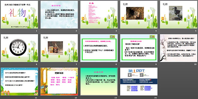 关键词:礼物课件下载,北师大版三年级下册语文PPT课件下载,三年级语文幻灯片课件下载,礼物PPT课件下载,.PPT格式;