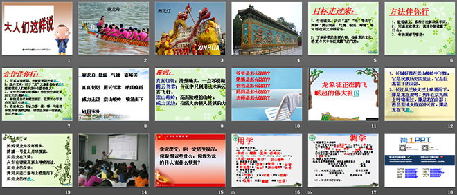 2、了解诗歌的主要内容,体会龙的文化,感受今天中华巨龙腾飞的气势。