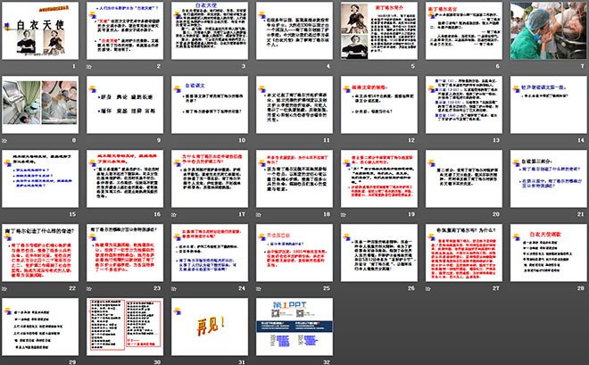 关键词:白衣天使课件下载,北师大版六年级下册语文PPT课件下载,六年级语文幻灯片课件下载,白衣天使PPT课件下载,.PPT格式;