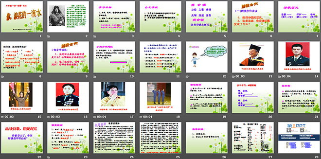 2、理解“一滴水”的含义,体会雷锋的精神品质。