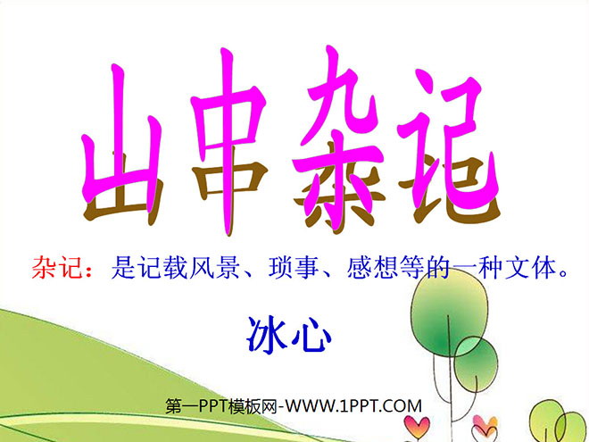关键词:山中杂记课件下载,北师大版六年级下册语文PPT课件下载,六年级语文幻灯片课件下载,山中杂记PPT课件下载,.PPT格式;