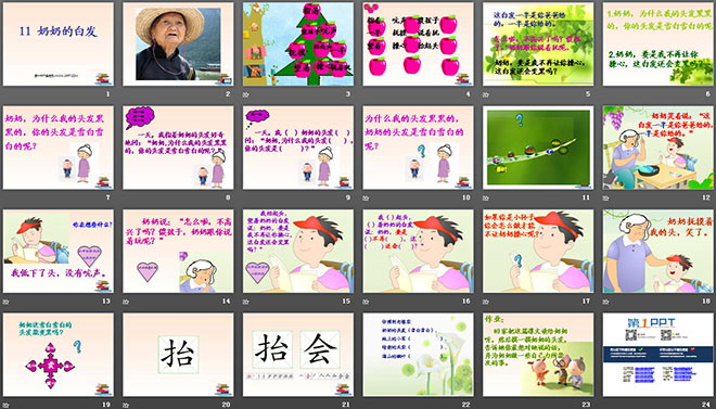 关键词:奶奶的白发课件下载,苏教版一年级下册语文PPT课件下载,一年级语文幻灯片课件下载,奶奶的白发PPT课件下载,.PPT格式;