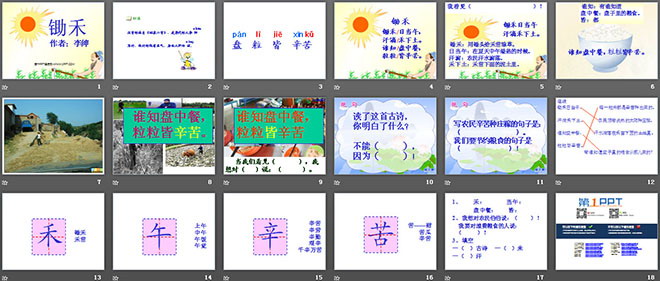 关键词:锄禾课件下载,苏教版一年级下册语文PPT课件下载,一年级语文幻灯片课件下载,锄禾PPT课件下载,.PPT格式;