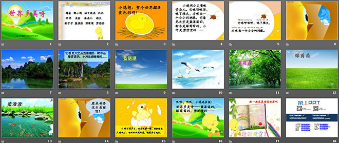 叽叽,叽叽,小鸡是在说:世界多美呀——蓝湛湛的,绿茵茵的,碧澄澄的……