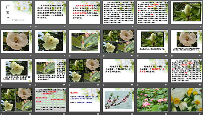 关键词:广玉兰课件下载,苏教版六年级下册语文PPT课件下载,六年级语文幻灯片课件下载,广玉兰PPT课件下载,.PPT格式;