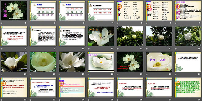 关键词:广玉兰课件下载,苏教版六年级下册语文PPT课件下载,六年级语文幻灯片课件下载,广玉兰PPT课件下载,.PPT格式;