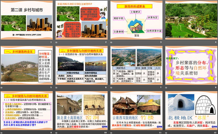 乡村聚落:即村落,是乡村地区人们的居住场所,也是人们进行生产和社会活动的场所。