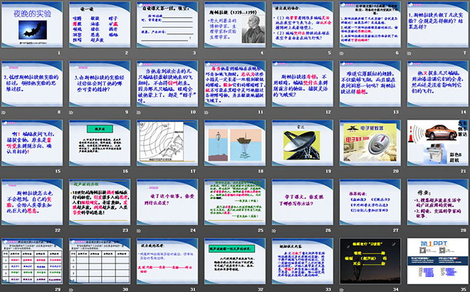 本文记叙了意大利科学家斯帕拉捷通过多次夜晚的实验,终于揭开蝙蝠飞行秘密的经过。这一实验的结果促使了人们对超声波的研究,并给人类带来巨大恩惠,赞扬了科学家细心观察、善于思考、不断实验、潜心研究利用科学技术造福人类的精神。