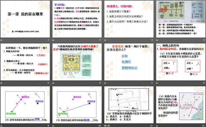 我的家在哪里PPT,第二部分内容:地图上的方向