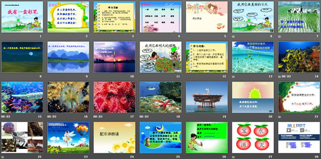 关键词:我有一盒彩笔课件,北师大版二年级上册语文PPT课件下载,二年级语文幻灯片课件下载,我有一盒彩笔PPT课件下载,.PPT格式;