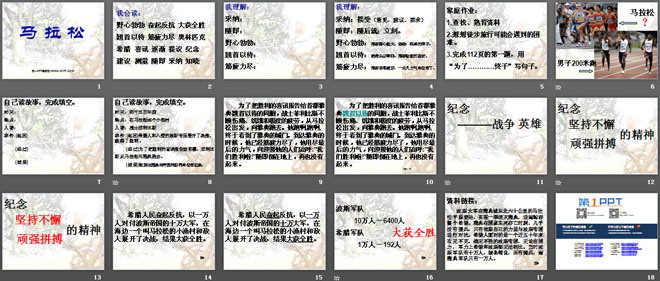 关键词:马拉松课件,北师大版三年级上册语文PPT课件下载,三年级语文幻灯片课件下载,马拉松PPT课件下载,.PPT格式;