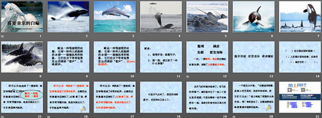关键词:喜爱音乐的白鲸课件,北师大版三年级上册语文PPT课件下载,三年级语文幻灯片课件下载,喜爱音乐的白鲸PPT课件下载,.PPT格式;