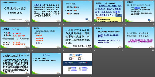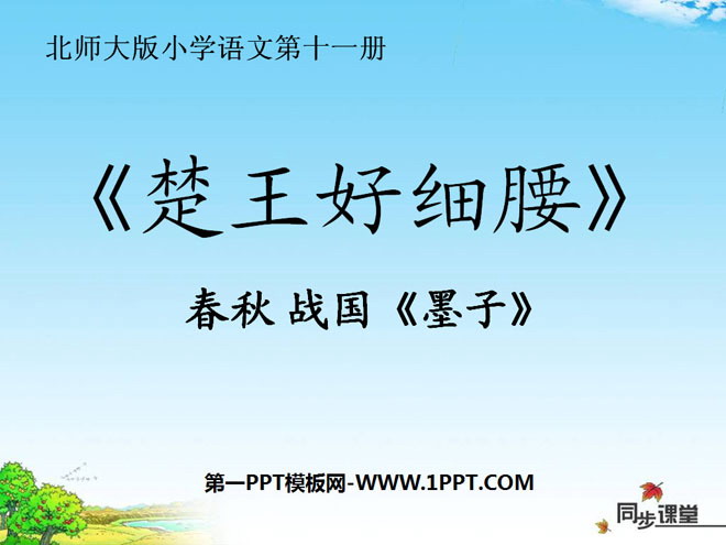 关键词:楚王好细腰课件,北师大版六年级上册语文PPT课件下载,六年级语文幻灯片课件下载,楚王好细腰PPT课件下载,.PPT格式;