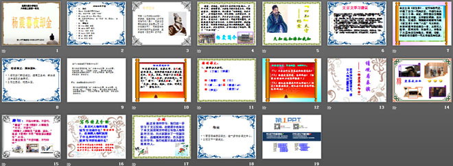 关键词:杨震暮夜却金课件,北师大版六年级上册语文PPT课件下载,六年级语文幻灯片课件下载,杨震暮夜却金PPT课件下载,.PPT格式;