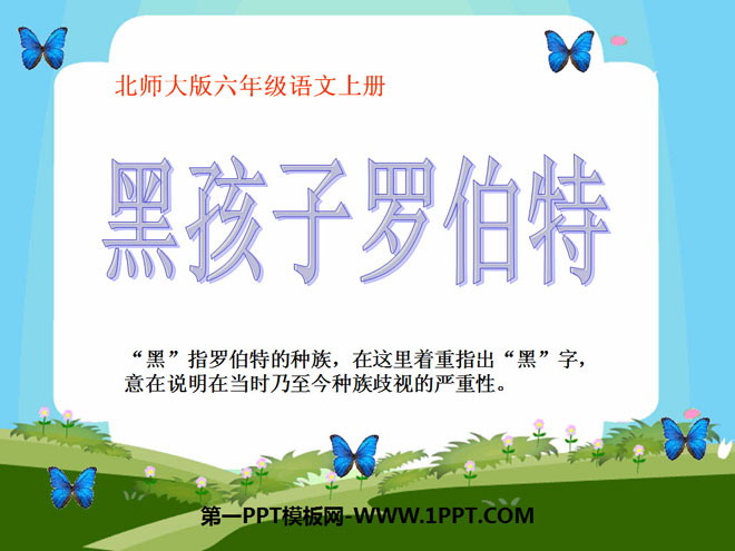 关键词:黑孩子罗伯特课件,北师大版六年级上册语文PPT课件下载,六年级语文幻灯片课件下载,黑孩子罗伯特PPT课件下载,.PPT格式;