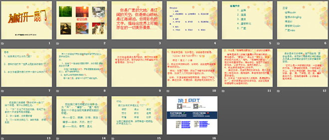 关键词:为你打开一扇门课件,苏教大版七年级上册语文PPT课件下载,七年级语文幻灯片课件下载,为你打开一扇门PPT课件下载,.PPT格式;