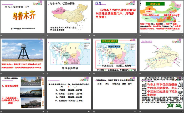 向西开放的重要门户乌鲁木齐PPT,第二部分内容:课堂练习
