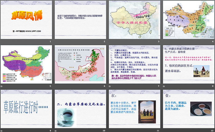 关键词:人教版七年级下册历史与社会PPT课件免费下载,草原风情PPT下载,一方水土养一方人PPT下载,.PPT格式;