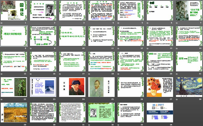 二、默读“赏绿”一段,品味作者细腻的笔触,满怀的柔情,想象作者守望常春藤时的神态。