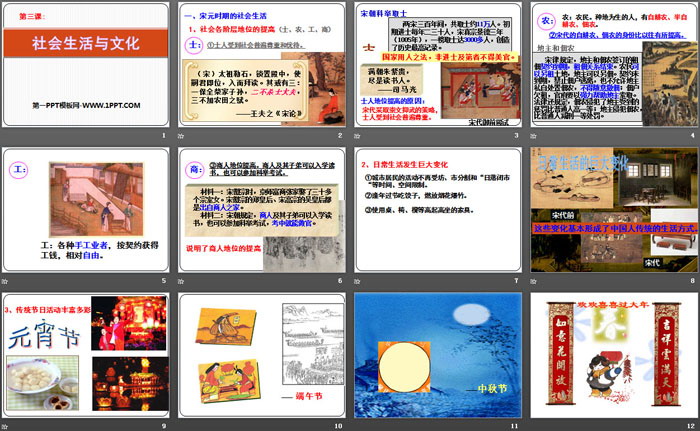 关键词:人教版八年级上册历史与社会PPT课件免费下载,社会生活与文化PPT下载,多元一体格局与文明高度发展PPT下载,.PPT格式;