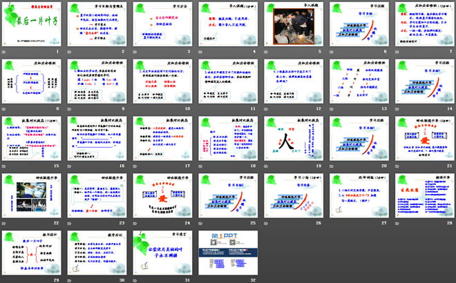 关键词:最后一片叶子课件,北师大版七年级上册语文PPT课件下载,七年级语文幻灯片课件下载,最后一片叶子PPT课件下载,.PPT格式;