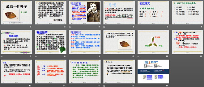 关键词:最后一片叶子课件,北师大版七年级上册语文PPT课件下载,七年级语文幻灯片课件下载,最后一片叶子PPT课件下载,.PPT格式;