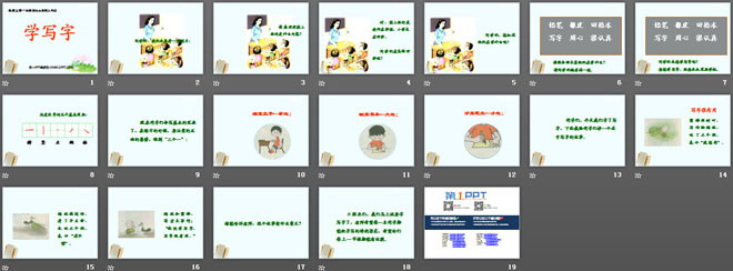 关键词:学写字课件,北师大版一年级上册语文PPT课件下载,一年级语文幻灯片课件下载,学写字PPT课件下载,.PPT格式;