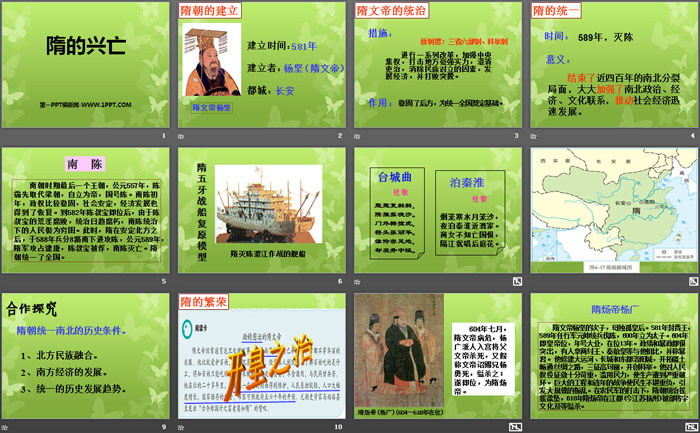 关键词:人教版八年级上册历史与社会PPT课件免费下载,隋的兴亡PPT下载,多元一体格局与文明高度发展PPT下载,.PPT格式;
