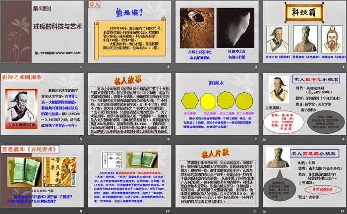 祖冲之和《圆周率》 贾思勰和《齐民要术》 郦道元和《水经注》
