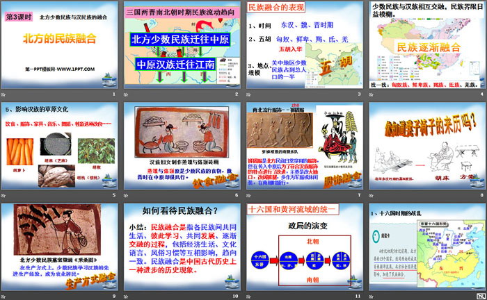 关键词:人教版八年级上册历史与社会PPT课件免费下载,北方的民族融合PPT下载,多元一体格局与文明高度发展PPT下载,.PPT格式;