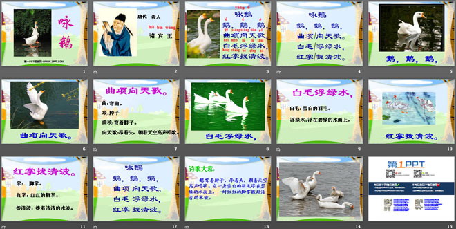 关键词:咏鹅课件,北师大版一年级上册语文PPT课件下载,一年级语文幻灯片课件下载,咏鹅PPT课件下载,.PPT格式;