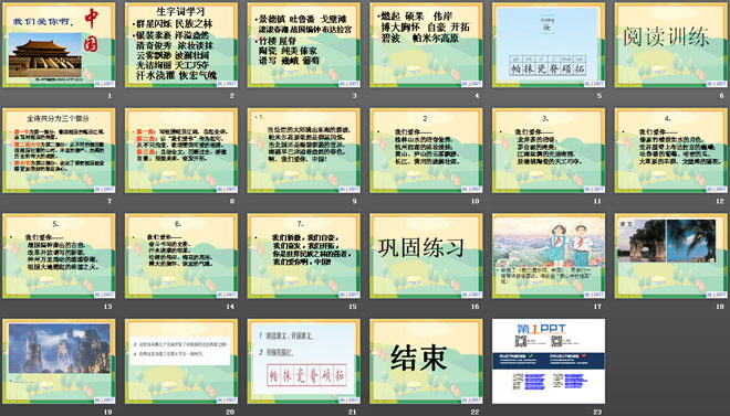 关键词:《我们爱你啊,中国》课件,苏教版六年级上册语文PPT课件下载,六年级语文幻灯片课件下载,《我们爱你啊,中国》PPT课件下载,.PPT格式;