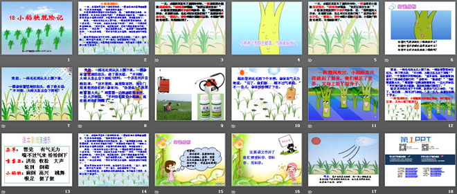 作业:展开你想象的翅膀,想一想小稻秧在成长的过程中还会遇到哪些危险,他又是怎样脱险的,试着编个故事,好吗?