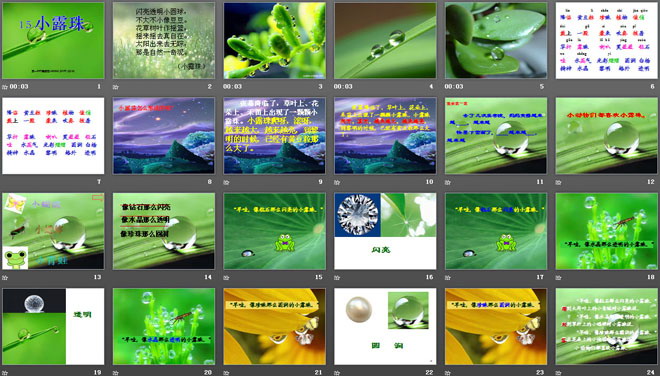 关键词:小露珠课件,苏教版三年级上册语文PPT课件下载,三年级语文幻灯片课件下载,小露珠PPT课件下载,.PPT格式;