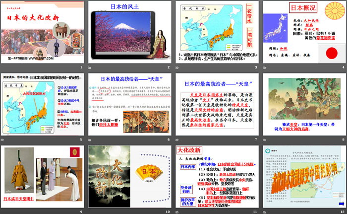 关键词:人教版八年级上册历史与社会PPT课件免费下载,日本的大化改新PPT下载,相继兴衰的中古欧亚国家PPT下载,.PPT格式;