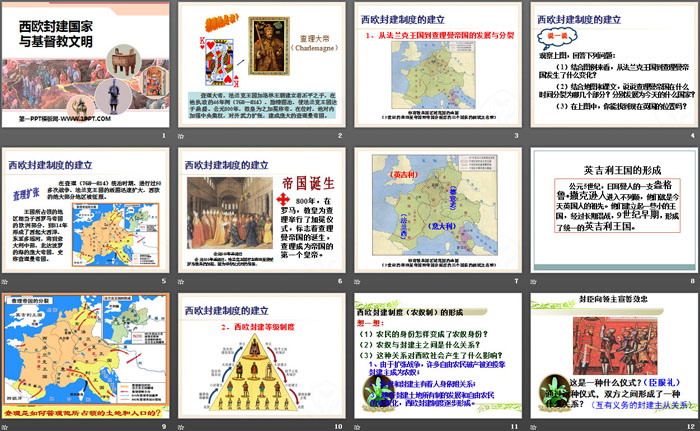 关键词:人教版八年级上册历史与社会PPT课件免费下载,西欧封建国家与基督教文明PPT下载,相继兴衰的中古欧亚国家PPT下载,.PPT格式;